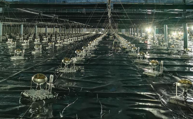 水切伦科夫探测器内安装到位的部分探测器阵列