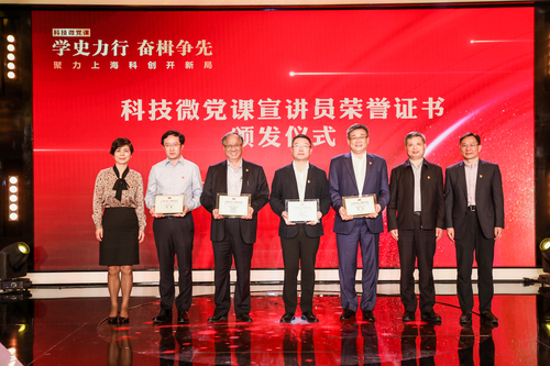 六位嘉宾演讲后,由科技机关党委为他们颁发了“科技微党课宣讲员”荣誉证书。