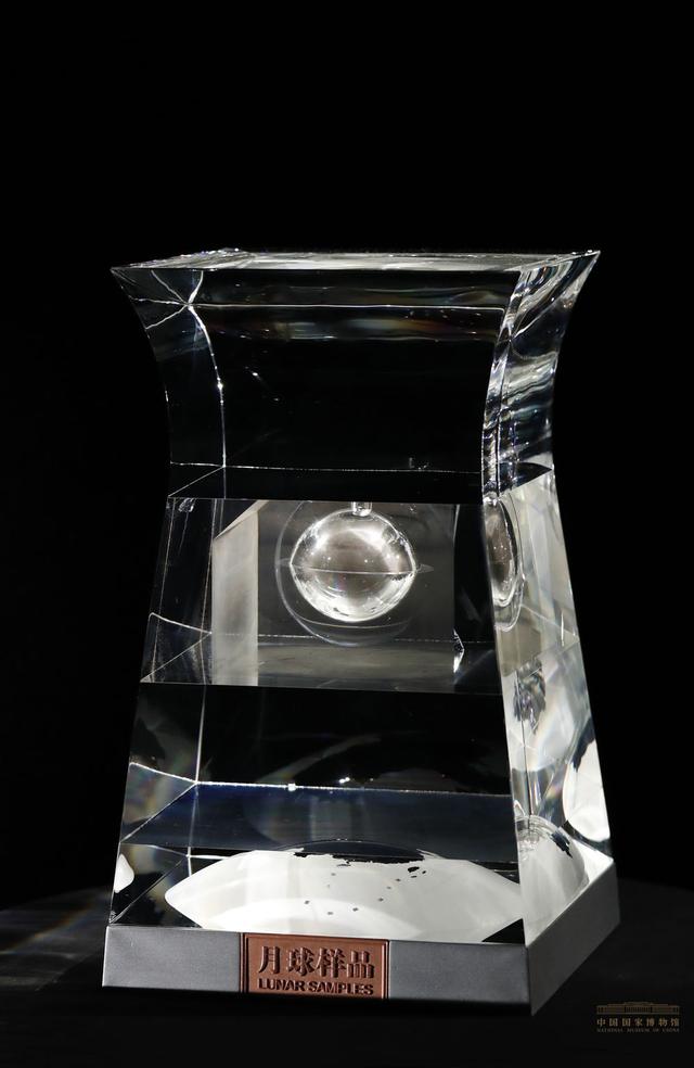 展览上,首先映入眼帘的,是由一方形似中国尊的容器储存的月球样品。这是嫦娥五号从月球带回的“土特产”。