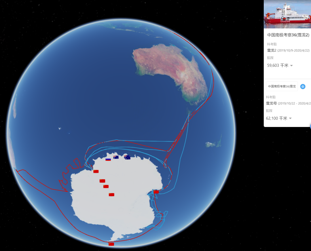 中国第36次南极科学考察队“雪龙2”号和“雪龙”号航迹(图源:双龙探极)