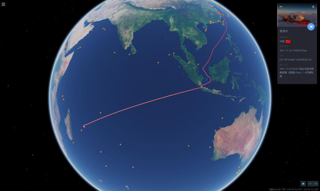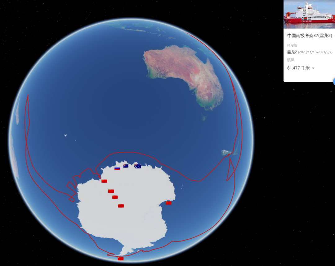 中国第37次南极科学考察队“雪龙2”号航迹(图源:双龙探极)
