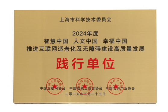 近日,上海市科学技术委员会喜获国家级殊荣——由中国互联网协会、中国助残志愿者协会、中国老龄产业协会联合授予的“推进互联网适老化及无障碍建设高质量发展践行单位”称号。
