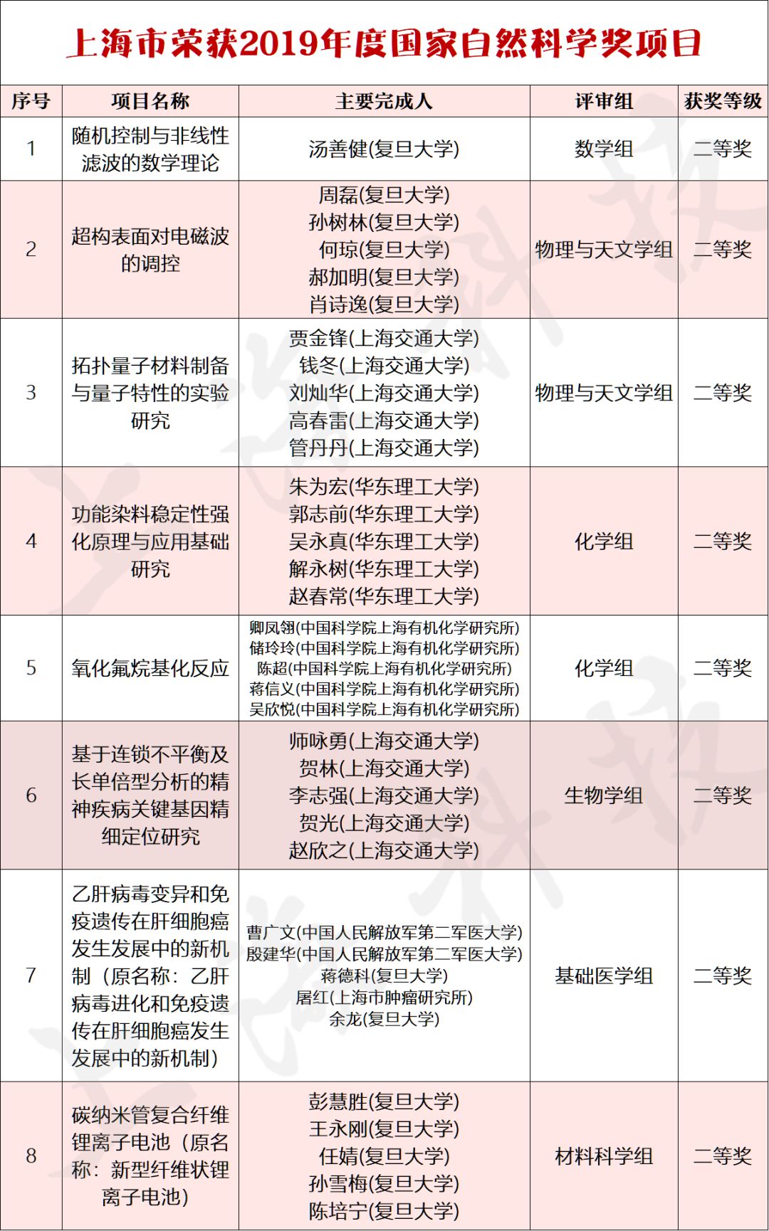 重磅!上海52项重大科技成果荣获2019年度国家科学技术奖!